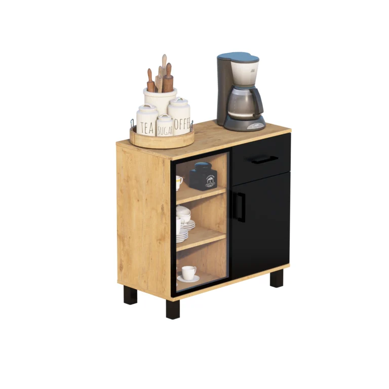 Coraz większą popularnością cieszą się także modele hybrydowe – czyli szafy z otwartą górą i zamykaną dolną częścią. To kompromis, który łączy wygodę szybkiego dostępu z funkcją bezpiecznego przechowywania. Przykładem tego rodzaju szafy jest np. model CLARO.
