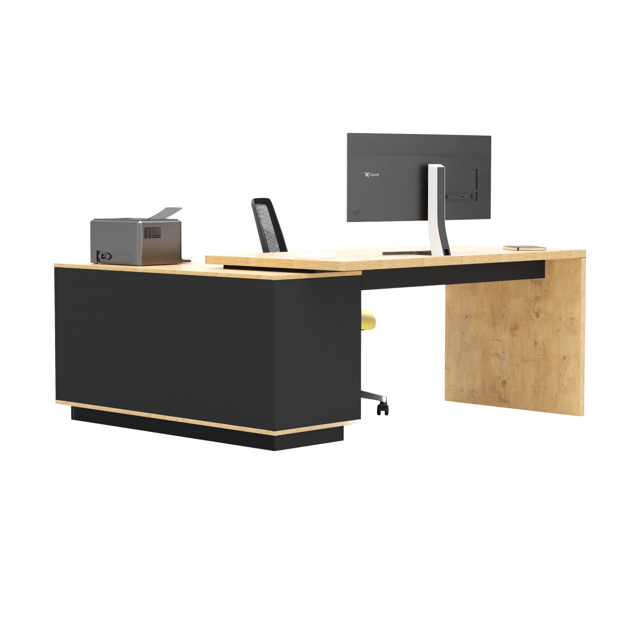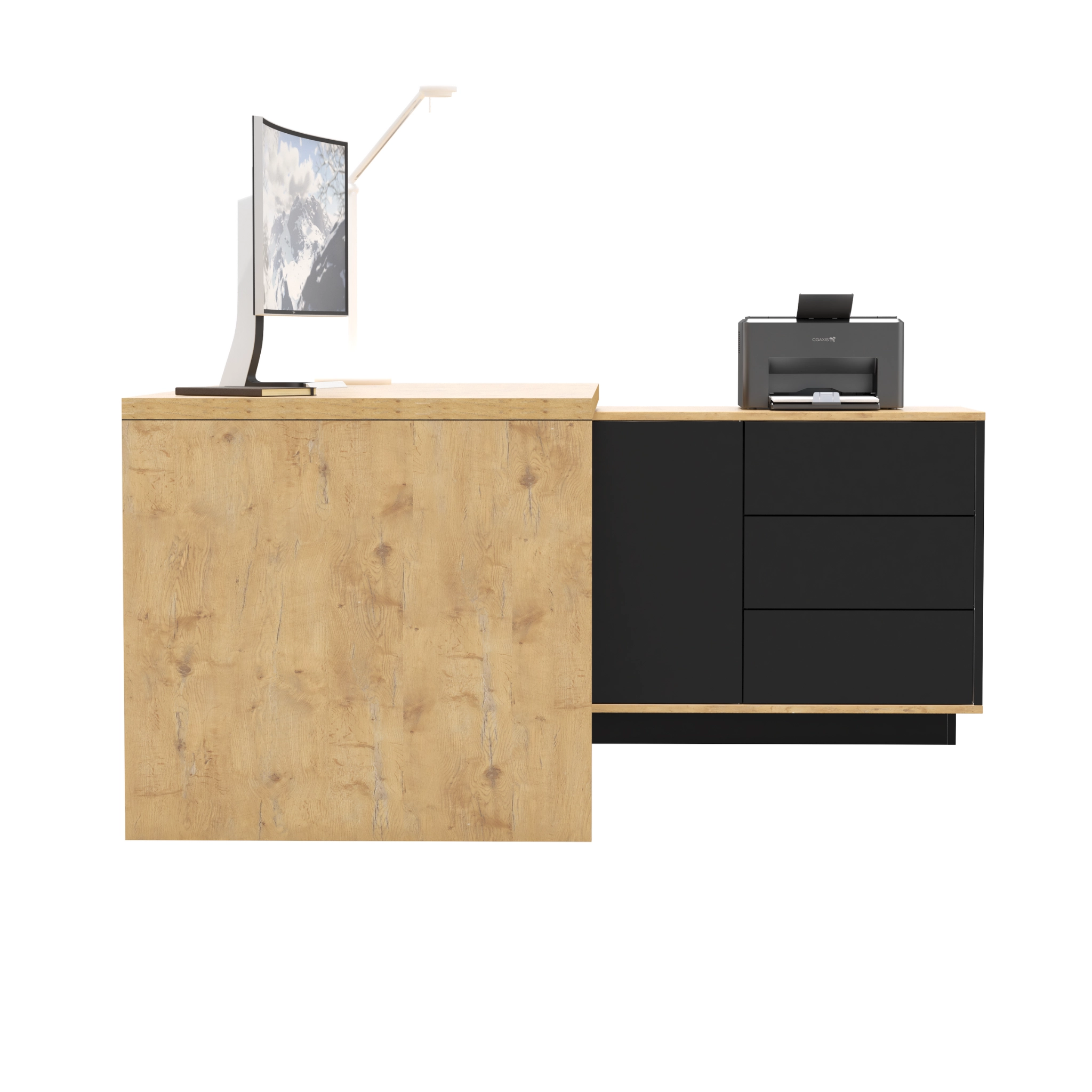 - Szerokość całkowita biurka: 1800 mm; głębokość całkowita: 1600 mm