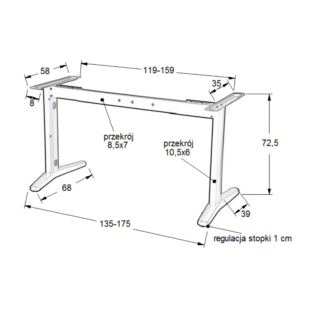- Rozmiar blatu: 1375 x 675 mm