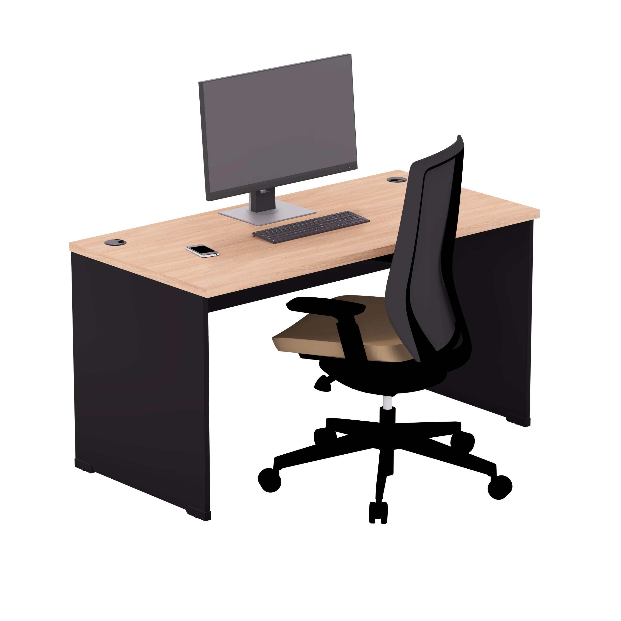 Biurko nie zawiera przepustu kablowego w zestawie. Poniżej możesz dodać dedykowane akcesoria.