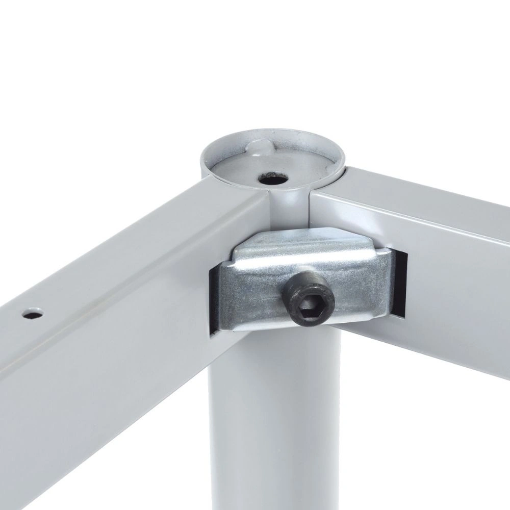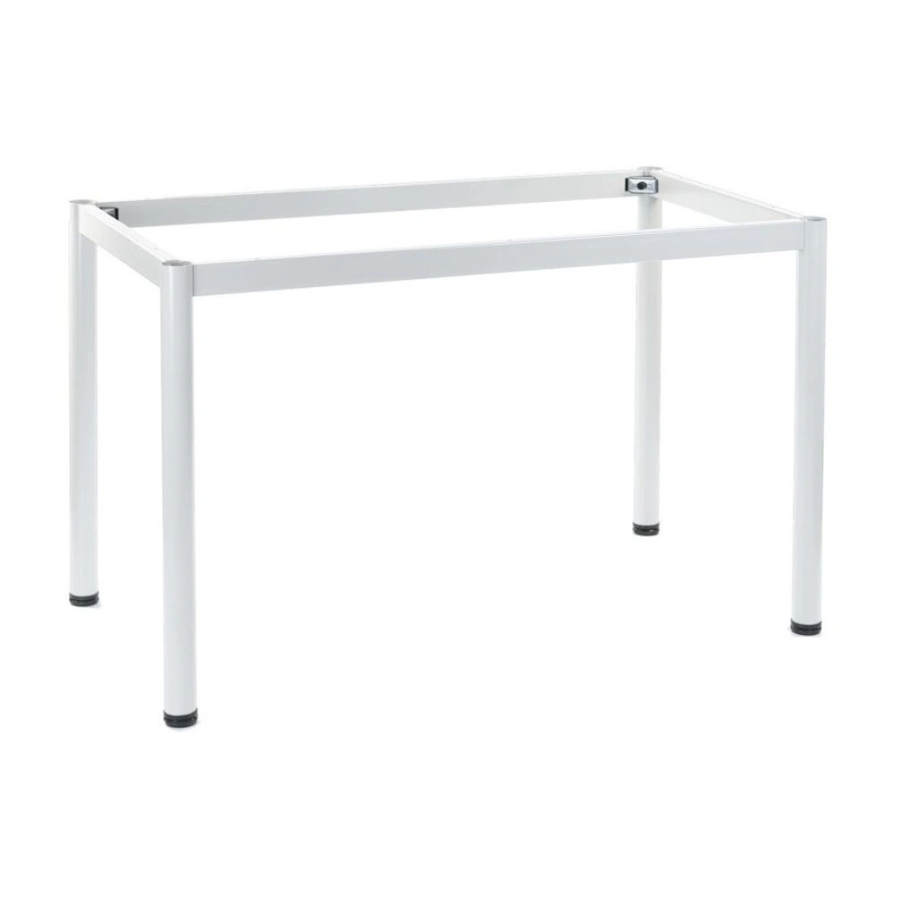 Stelaż ramowy biurka wykonany jest z malowanej proszkowo stali, co gwarantuje stabilność i wytrzymałość. Nogi biurka zakończone są tworzywowymi stopkami poziomującymi regulowanymi do 10 mm, co pozwala na stabilne ustawienie biurka nawet na nierównych powierzchniach.