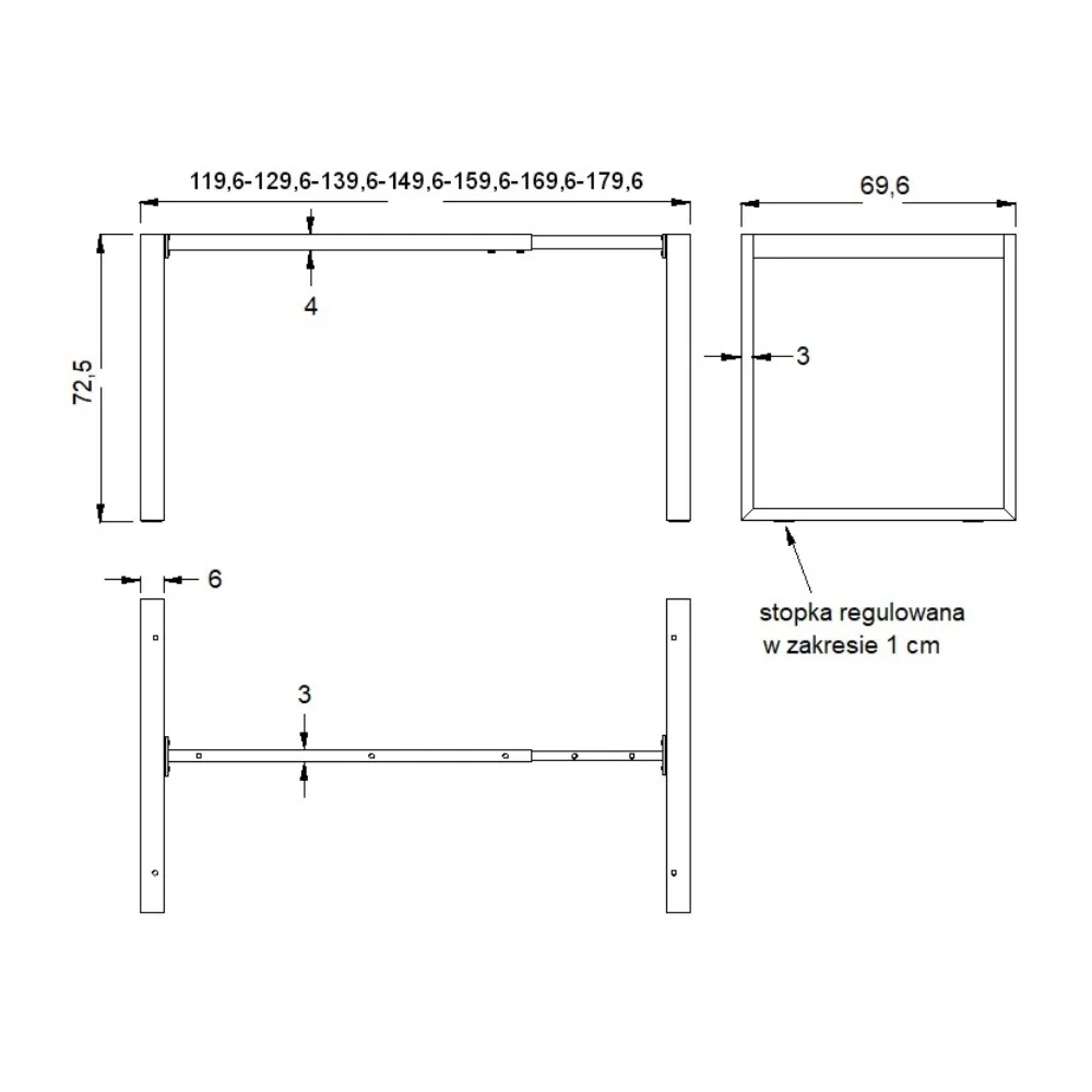 - Rozmiar blatu: 120/140/160 x 60/70/80 cm