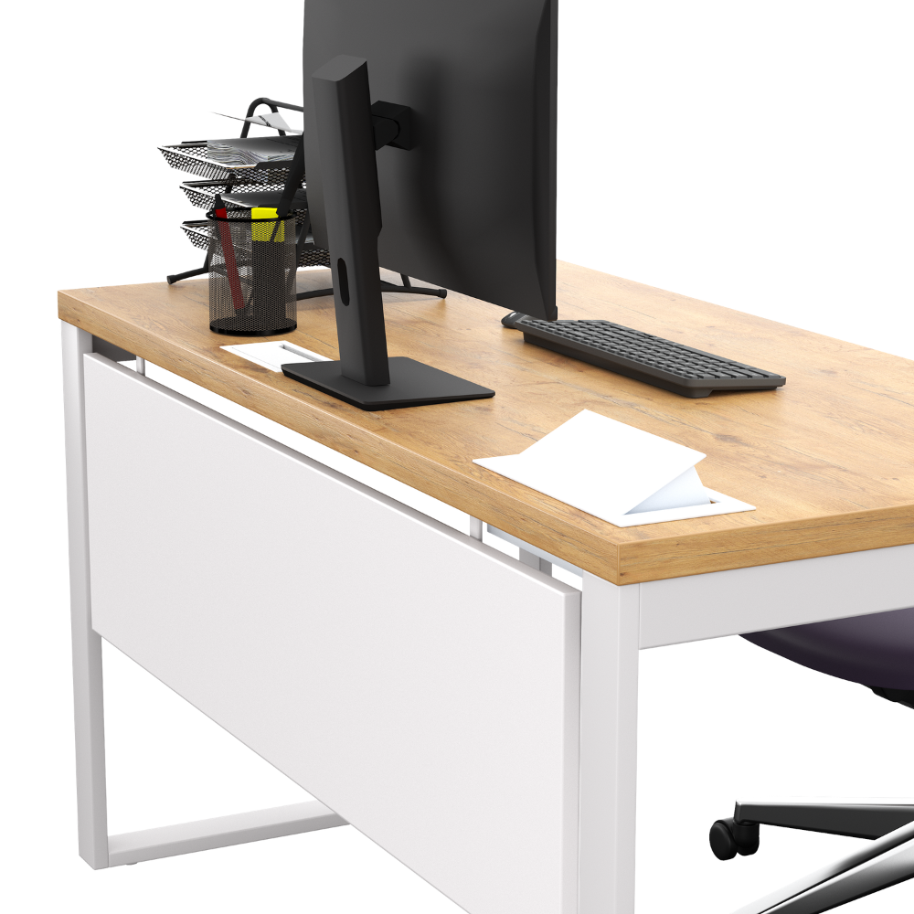 - Jeśli do biurka wybierasz akcesoria, takie jak mediaport, przepust lub maskownica, wszystkie niezbędne otwory wykonamy w blacie już na etapie produkcji. Jeżeli chcesz, aby akcesoria były umieszczone w wybranym przez Ciebie miejscu, skontaktuj się z nami lub napisz w komentarzu do zamówienia.