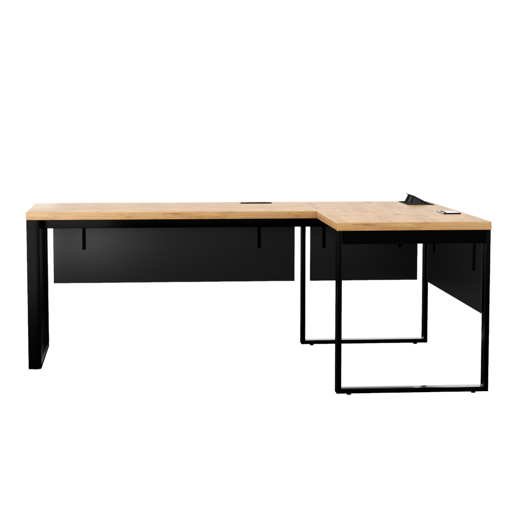 Biurko narożne dąb lancelot LOFT to idealne rozwiązanie zarówno dla przestrzeni domowej jak i dużej firmy, która potrzebuje funkcjonalnego i trwałego mebla do pracy. Biurka narożne loftowe są wykonane z metalowego stelaża i blatu z odpornej płyty laminowanej, co zapewnia stabilność i łatwość w utrzymaniu czystości. Biurka narożne loftowe oferują dużą powierzchnię roboczą, co umożliwia wygodną pracę na kilku urządzeniach jednocześnie, a także dodatkowe miejsce na dokumenty, akcesoria biurowe i przestrzenie na kable, co ułatwia organizację pracy.