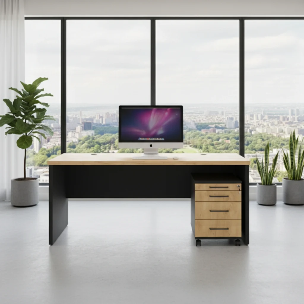 Biurko z płyty Forma to funkcjonalne i ekonomiczne rozwiązanie do każdego biura czy pokoju pracy. Wyposażone w solidny blat o grubości 28 mm zapewnia wytrzymałość, a jego odporność na uderzenia i zarysowania sprawia, że biurko jest nie tylko stylowe, ale także praktyczne i trwałe w codziennym użytkowaniu.