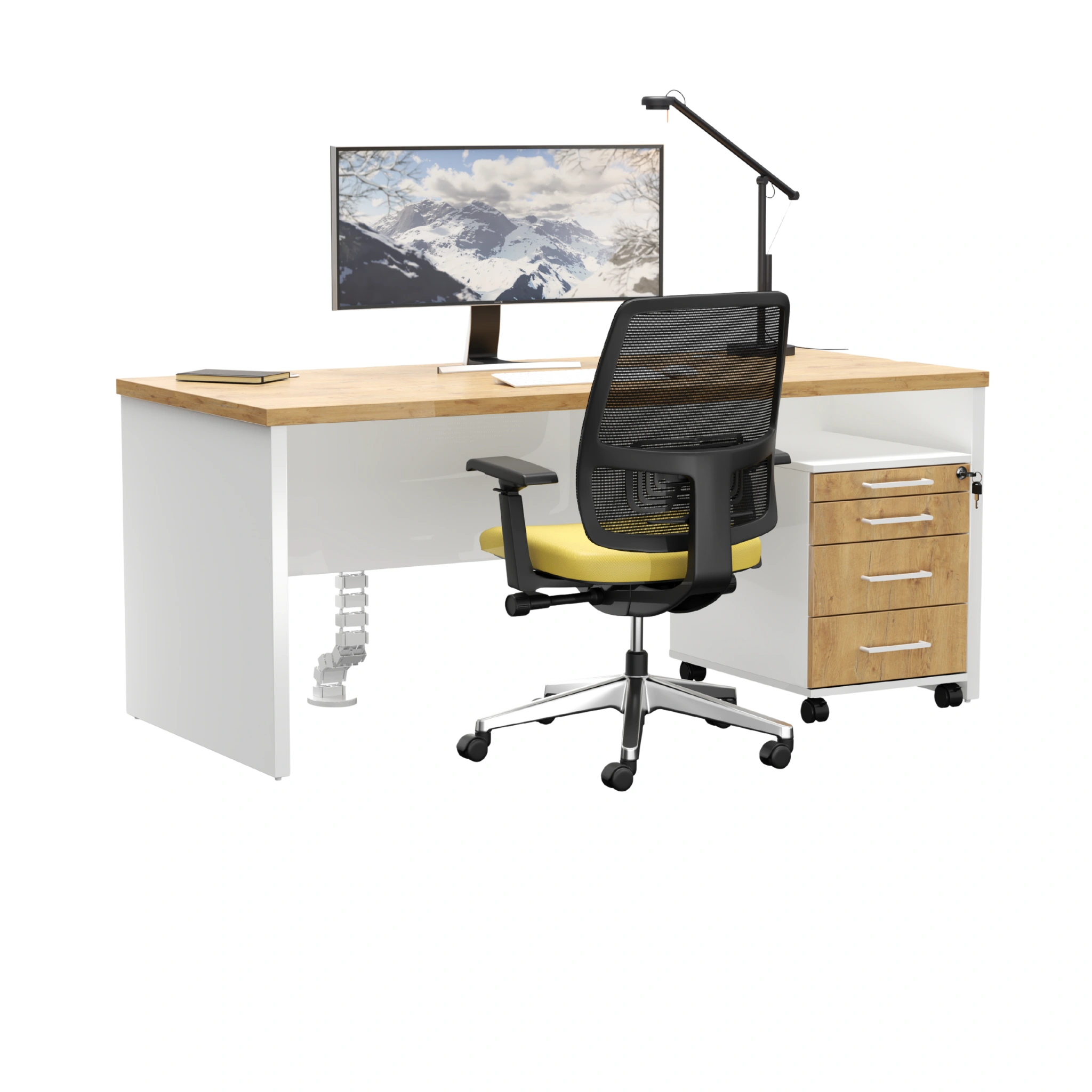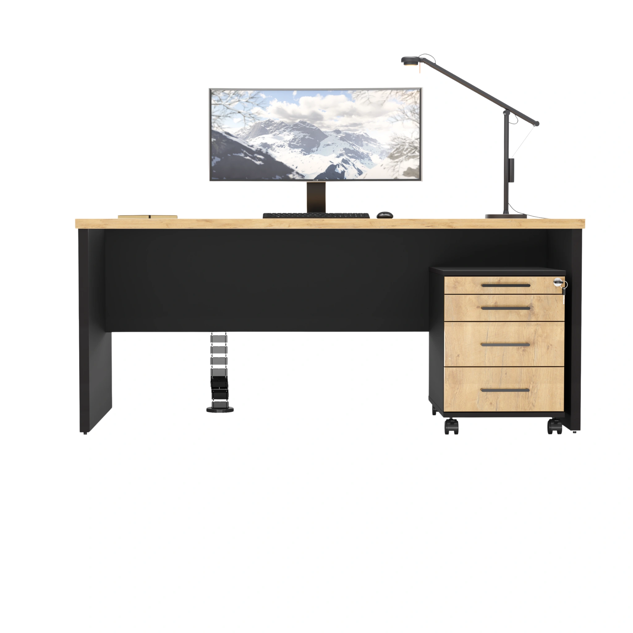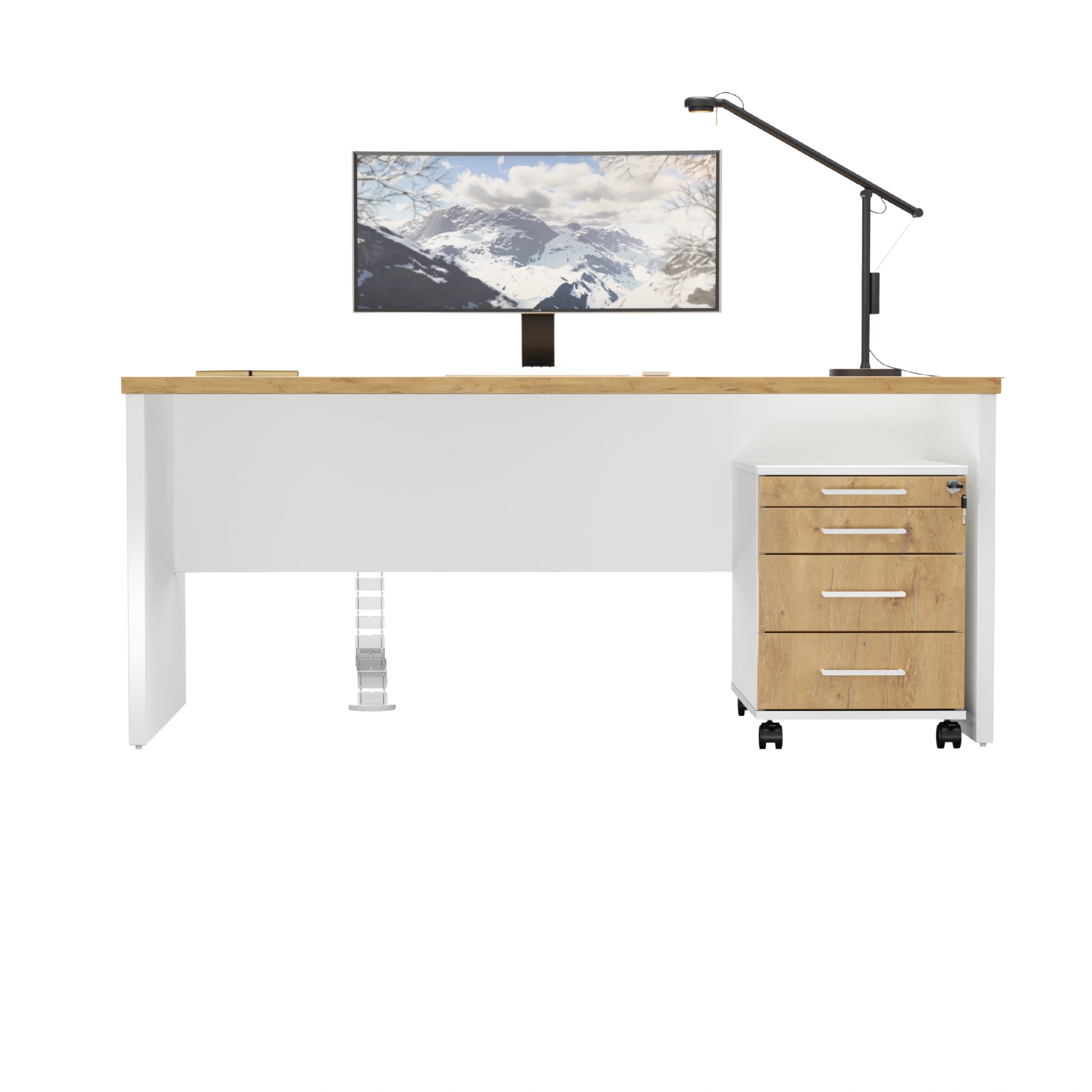 Biurko z płyty Forma + kontenerek Flex – dąb lancelot