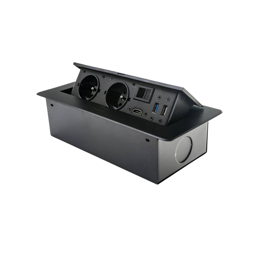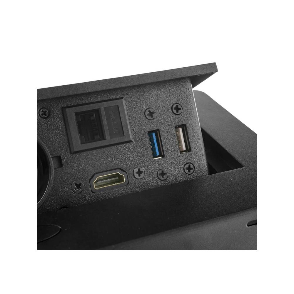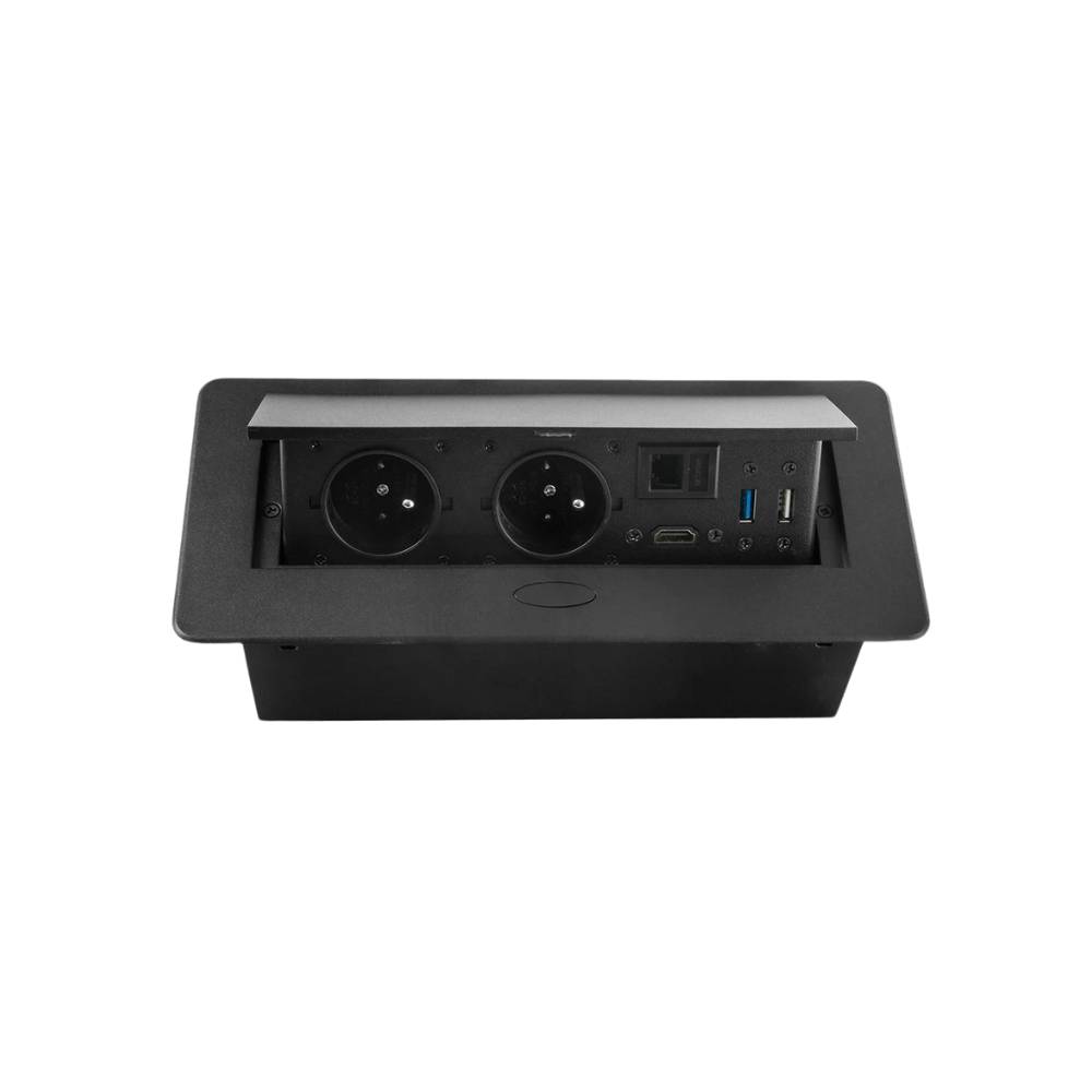 Mediaport D26B to wszechstronne i eleganckie rozwiązanie do biur, sal konferencyjnych oraz stanowisk pracy wymagających wygodnego dostępu do różnych portów zasilania i transmisji danych. Dzięki otwieranej konstrukcji i kompaktowym wymiarom doskonale integruje się z blatem biurka, zapewniając estetykę i funkcjonalność.