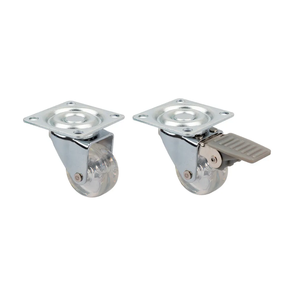 Zestaw zawiera 4 kółka (2 szt. z hamulcem, 2 szt. zwykłe)