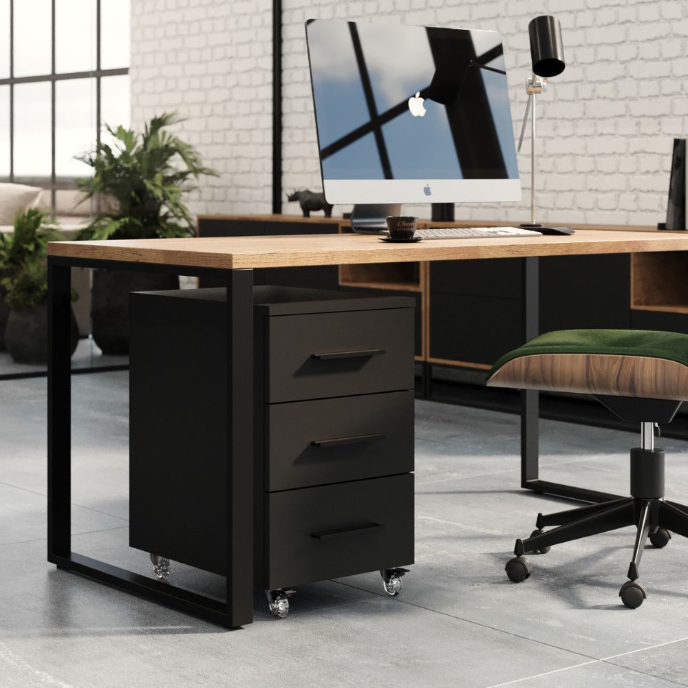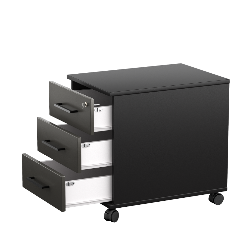 Kontenerek pod biurko LOFT Next 3 Czarny to niezastąpiony element wyposażenia każdego nowoczesnego biura, zapewniający funkcjonalność i stylowe wykończenie przestrzeni pracy.