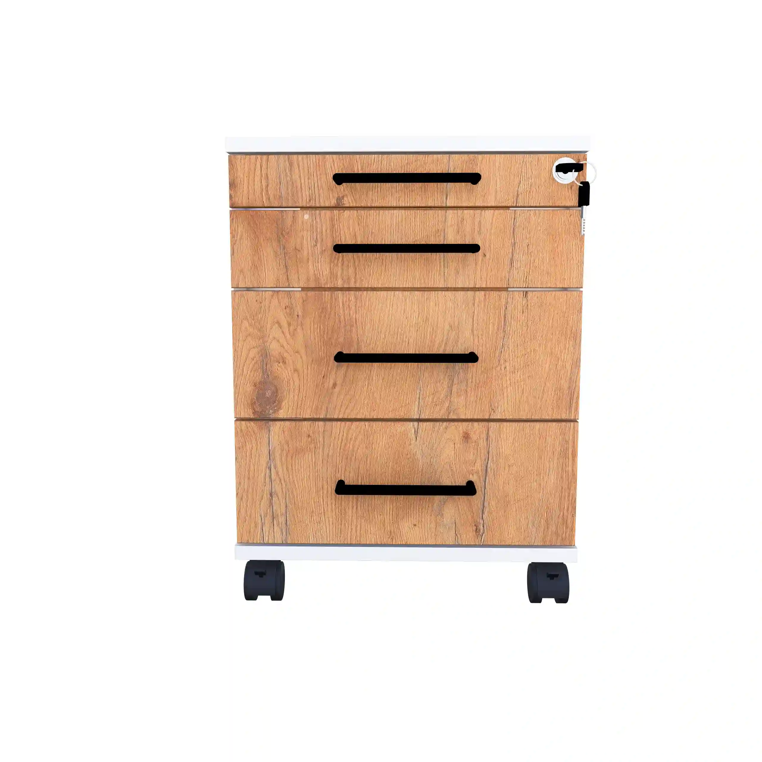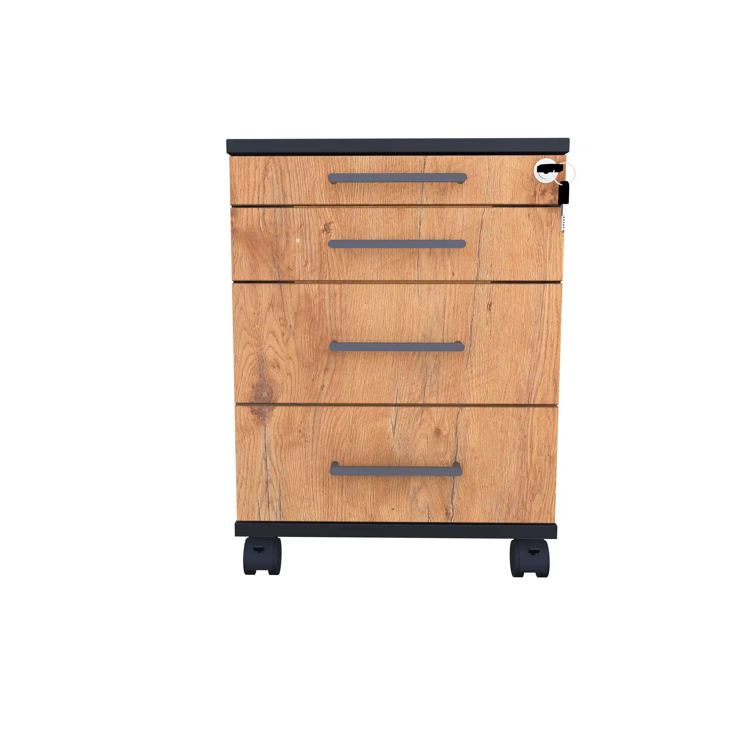 Kontenerek pod biurko LOFT Flex czteroszufladowy Dąb Lancelot to niezastąpiony element wyposażenia każdego nowoczesnego biura, zapewniający funkcjonalność i stylowe wykończenie przestrzeni pracy.