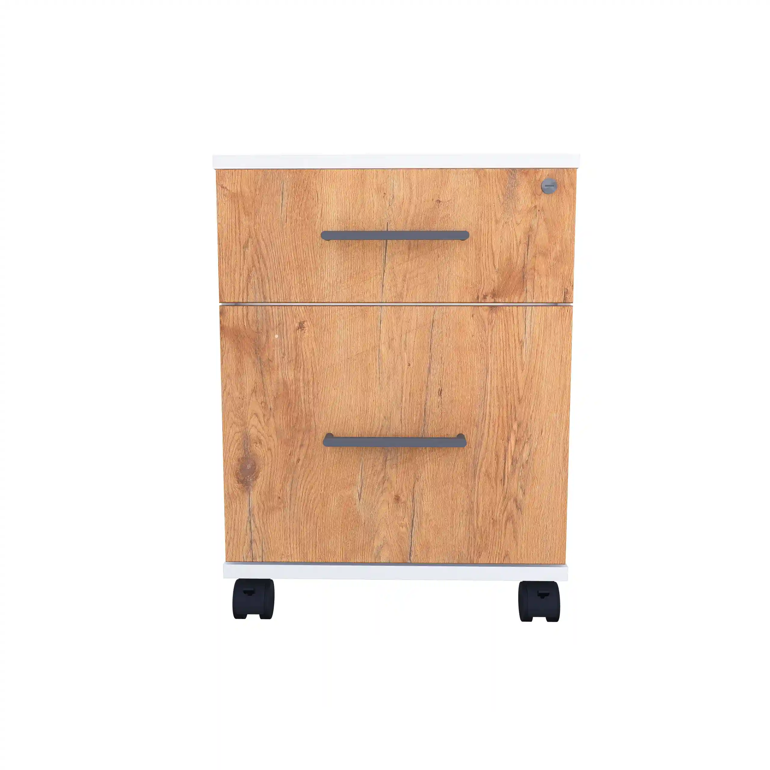 Kontenerek pod biurko LOFT Flex dwuszufladowy Dąb Lancelot to niezastąpiony element wyposażenia każdego nowoczesnego biura, zapewniający funkcjonalność i stylowe wykończenie przestrzeni pracy.