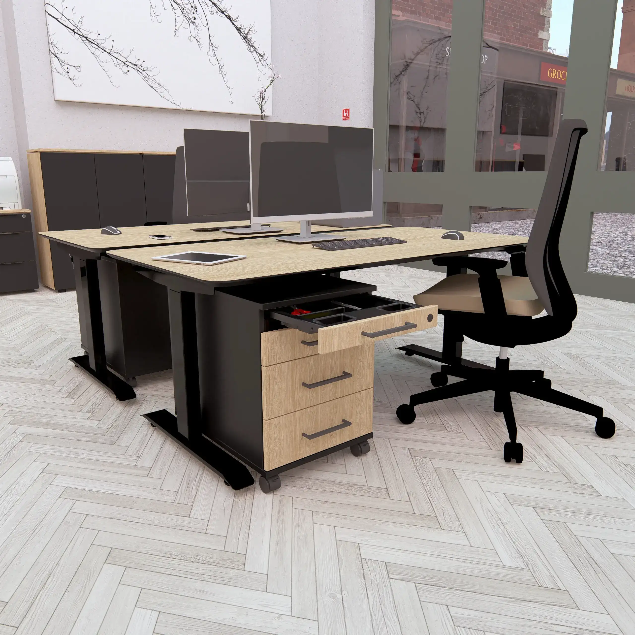 Kontenerek pod biurko LOFT Flex 2 – Dąb Olejowany