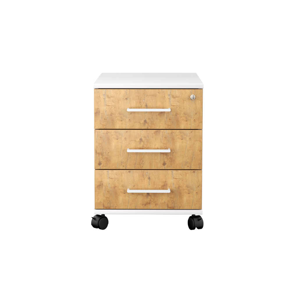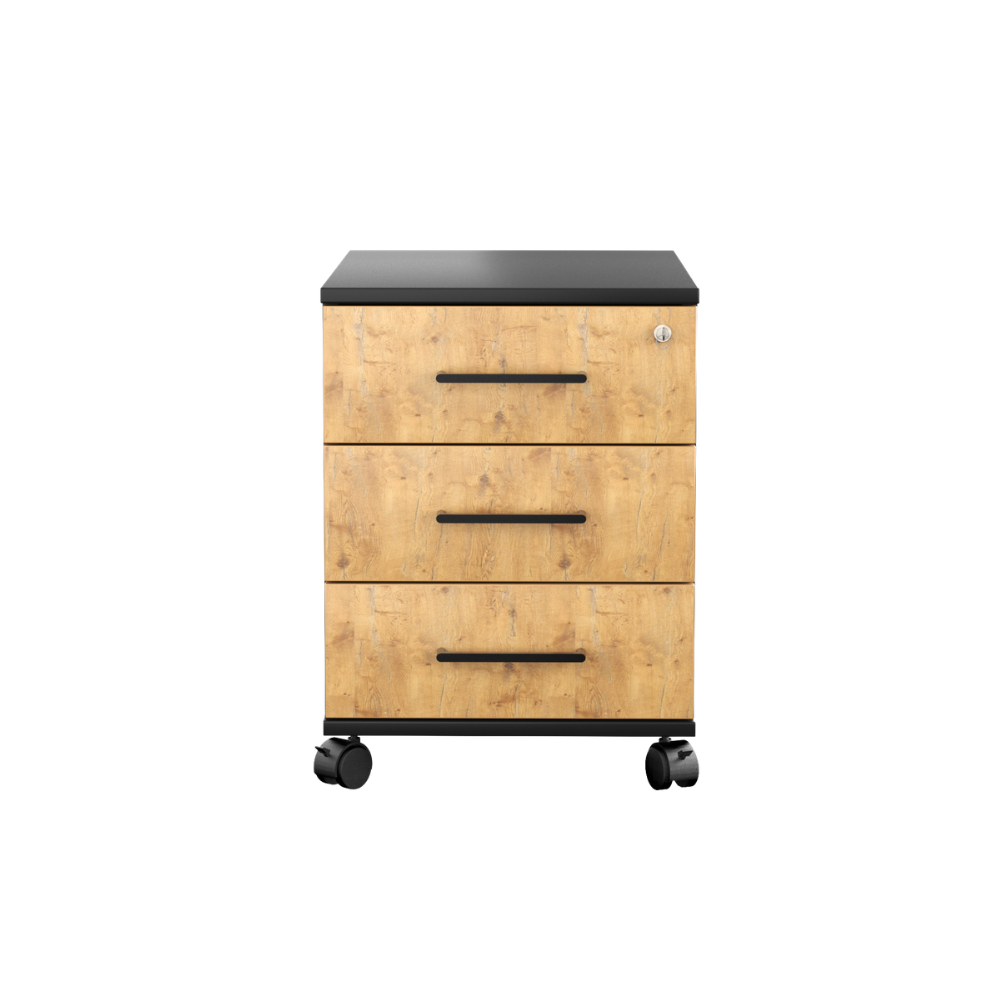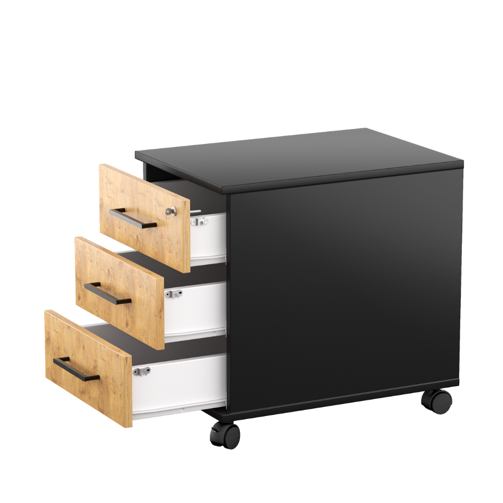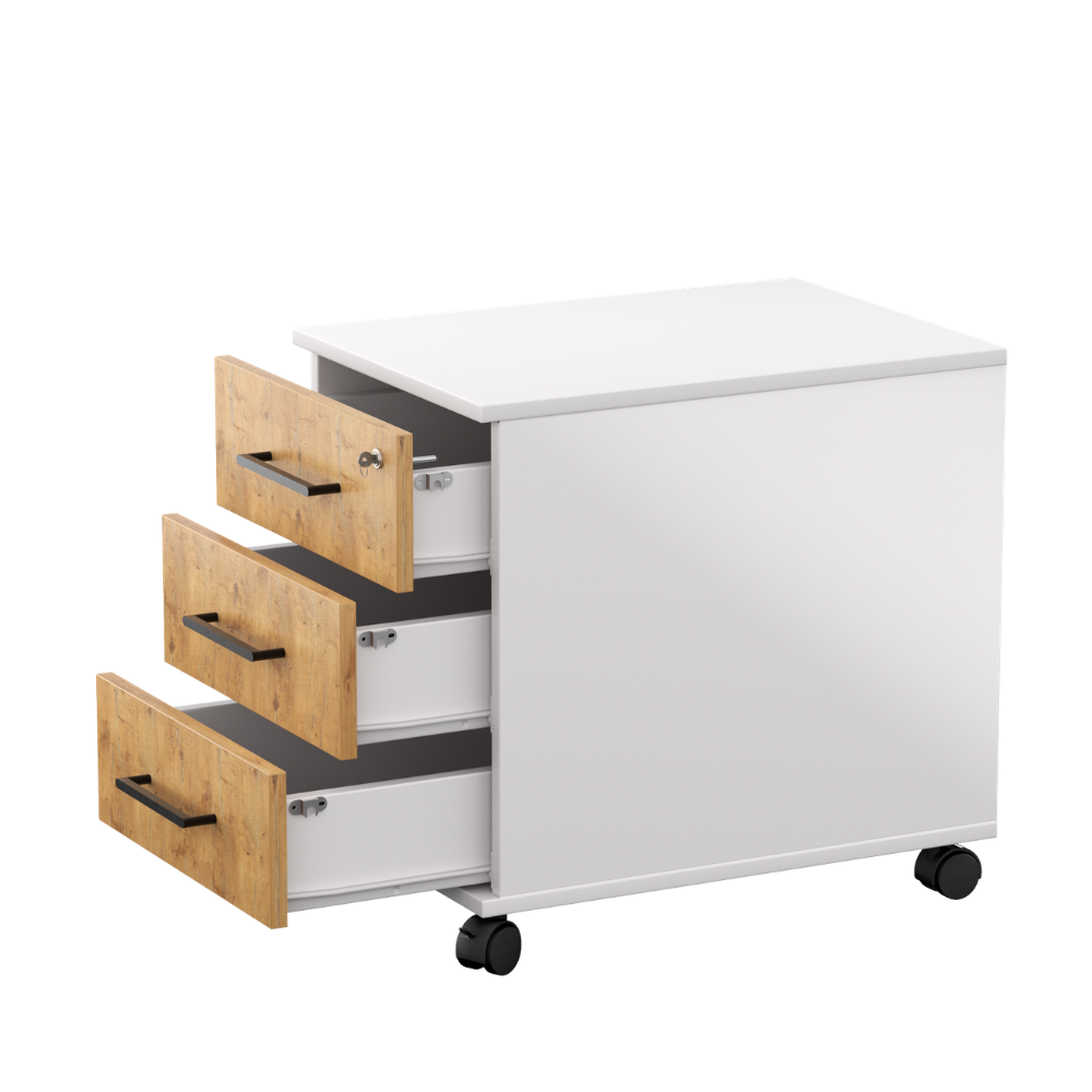 Kontenerek pod biurko LOFT Next 3 Dąb Lancelot to niezastąpiony element wyposażenia każdego nowoczesnego biura, zapewniający funkcjonalność i stylowe wykończenie przestrzeni pracy.