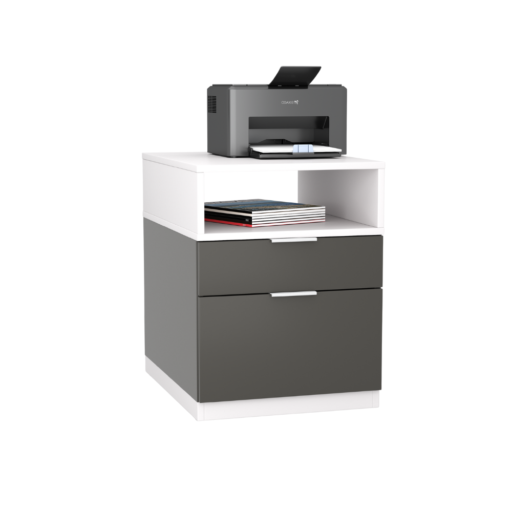 Zaprojektowany z dbałością o detale kontenerek biurowy to doskonałe rozwiązanie do przechowywania dokumentów i drobnych akcesoriów biurowych. Zbudowany z solidnej płyty meblowej o grubości 18 mm, gwarantuje trwałość i niezawodność przez wiele lat.