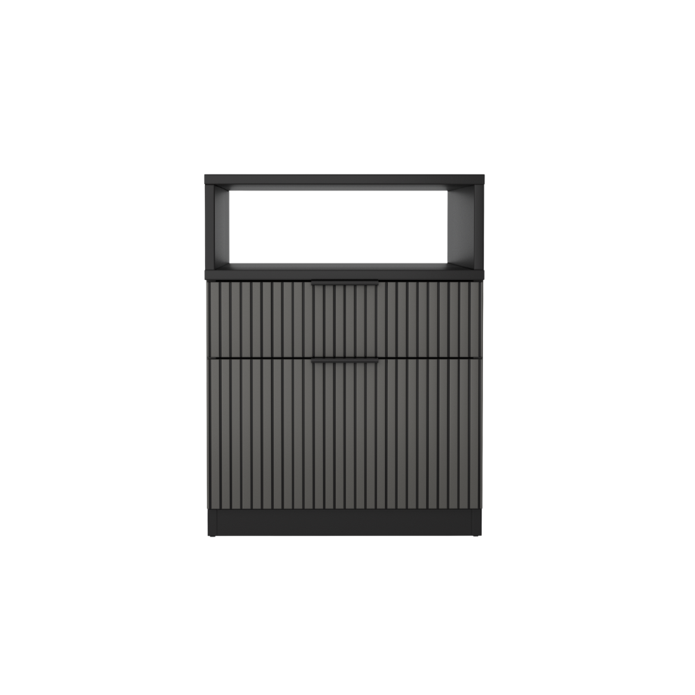 Dwie pojemne szuflady zapewniają wystarczającą przestrzeń do przechowywania, a metalowe uchwyty w kolorze czarnym dodają elegancji i nowoczesności. Wykonany z trwałej płyty meblowej, kontenerek jest odporny na zużycie i uszkodzenia, a jego poręczne rozmiary pozwalają na łatwe przenoszenie i umieszczanie go w dowolnym miejscu.