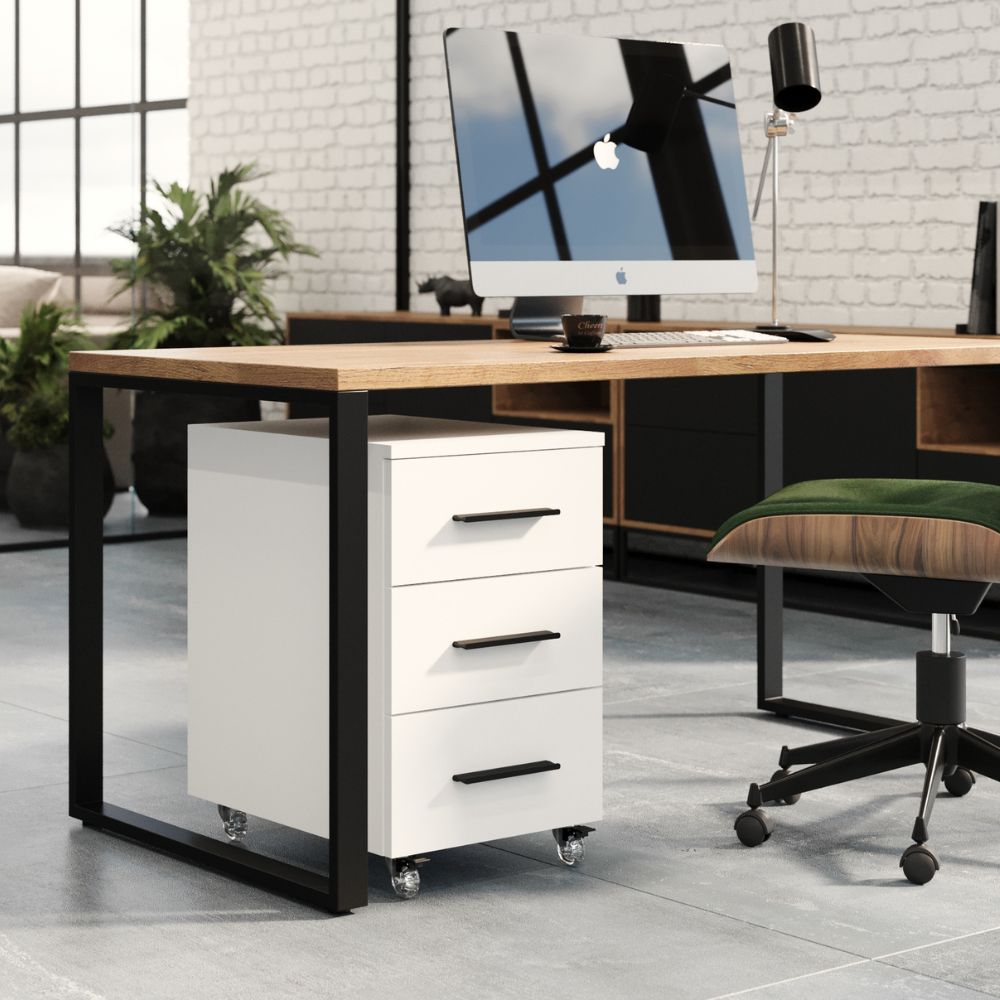 Kontenerek pod biurko LOFT Next 3 Biały to niezastąpiony element wyposażenia każdego nowoczesnego biura, zapewniający funkcjonalność i stylowe wykończenie przestrzeni pracy.