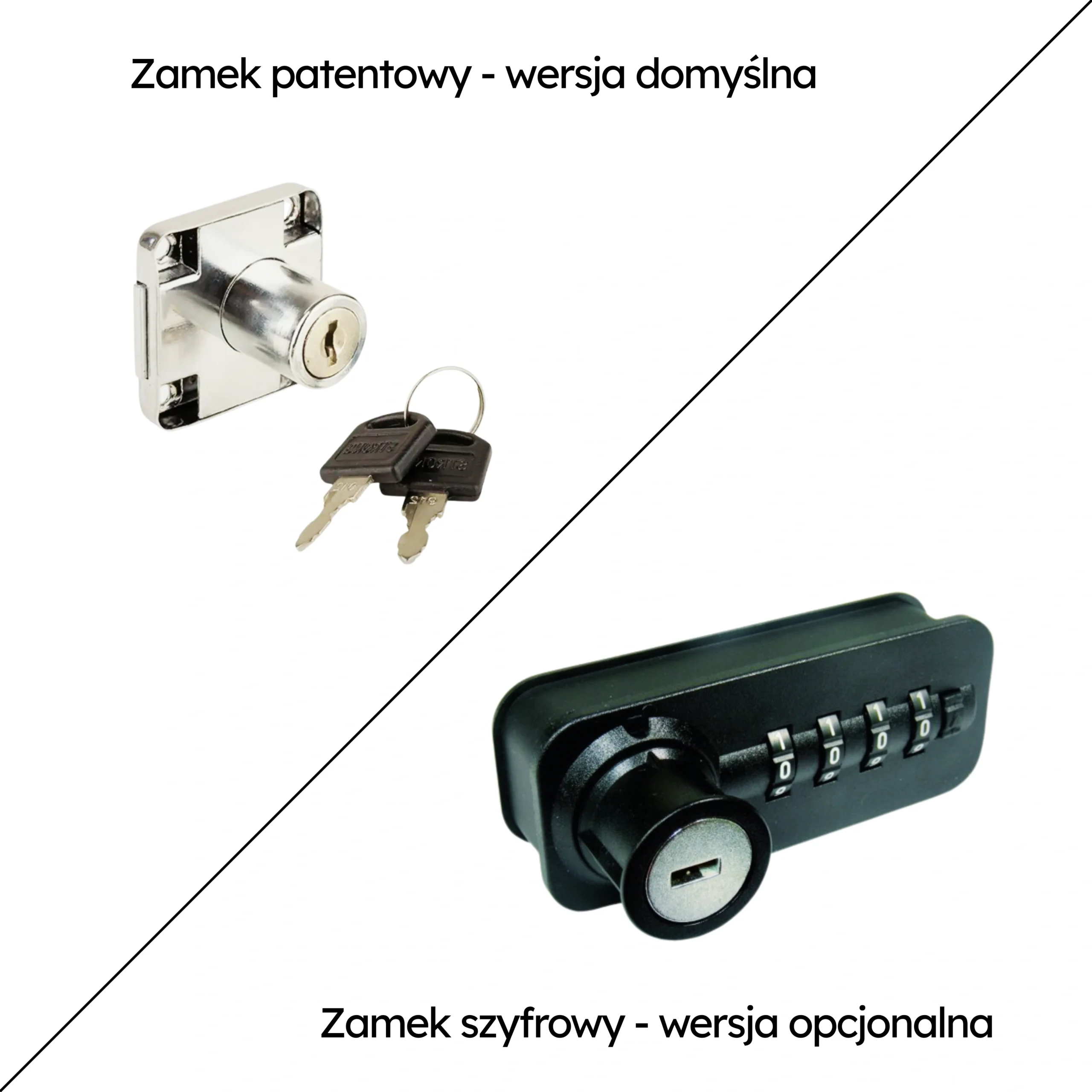W opcji za dopłatą możesz wyposażyć locker w zestaw zamków szyfrowych (numerycznych).