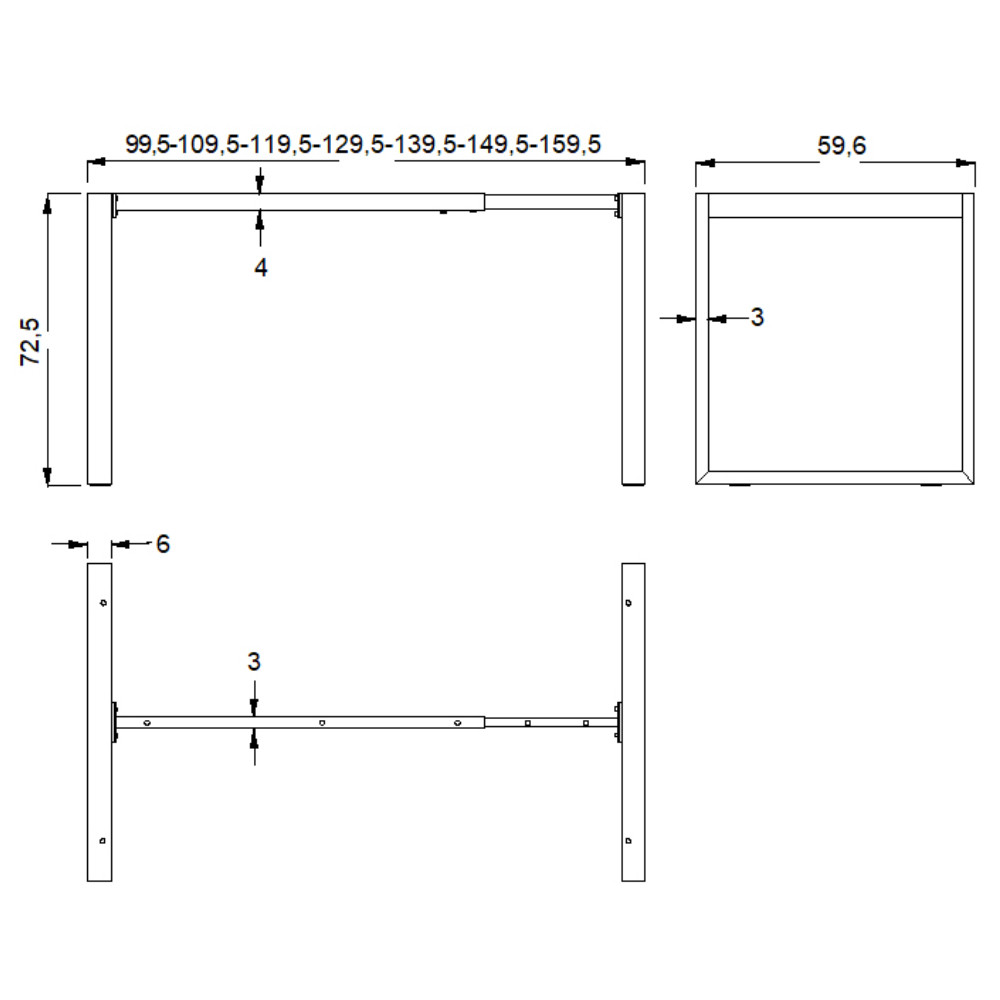 Stelaż do biurka LOFT 131A/60 cm z rozsuwaną belką 100-160 cm – aluminiowy
