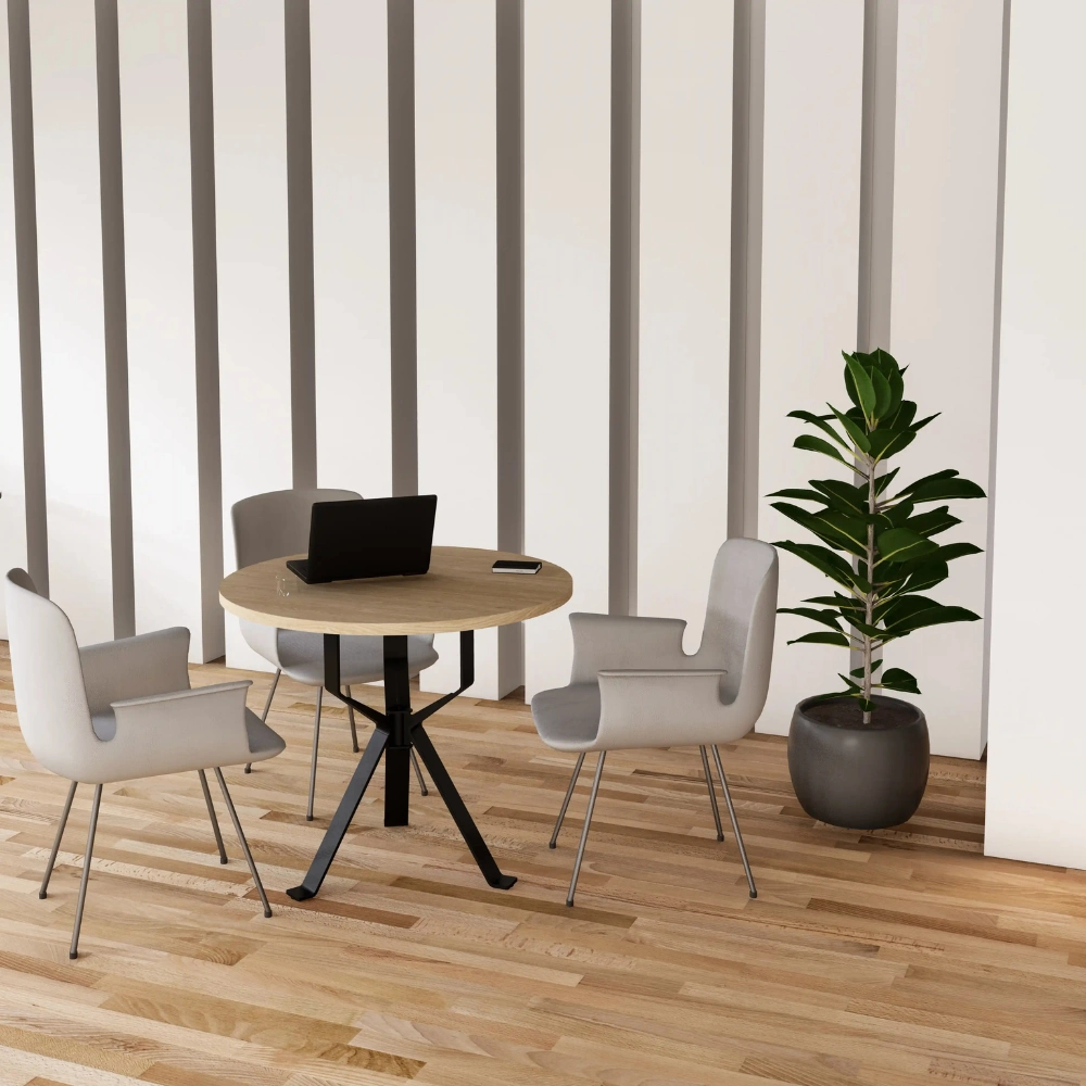 Stół konferencyjny LOFT okrągły EX735 to stylowy i solidny stół do spotkań, idealny do biur i sal konferencyjnych. Wyposażony w wytrzymały, spawany stelaż malowany proszkowo (czarny lub biały) i gruby blat 36 mm w dekorze Dąb Lancelot. Dostępny w różnych rozmiarach – dopasuj go w konfiguratorze do swoich potrzeb.
