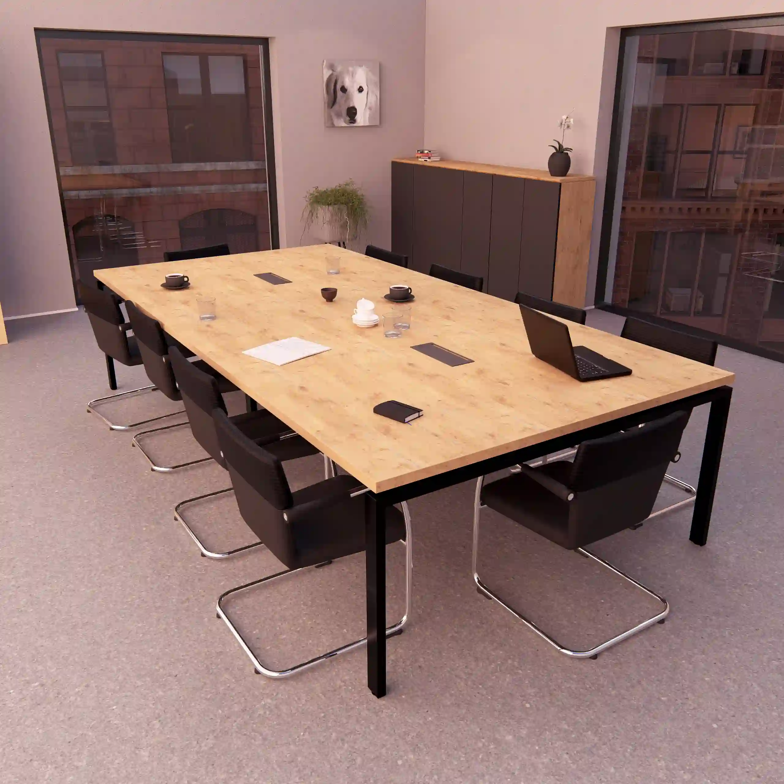 Dekory dodają stołu konferencyjnemu nuty loftowego charakteru, dzięki czemu doskonale komponuje się z wnętrzami w stylu LOFT, dodając im nowoczesnego i surowego wyrazu. Jego uniwersalny design idealnie będzie pasował do praktycznie każdego wystroju.