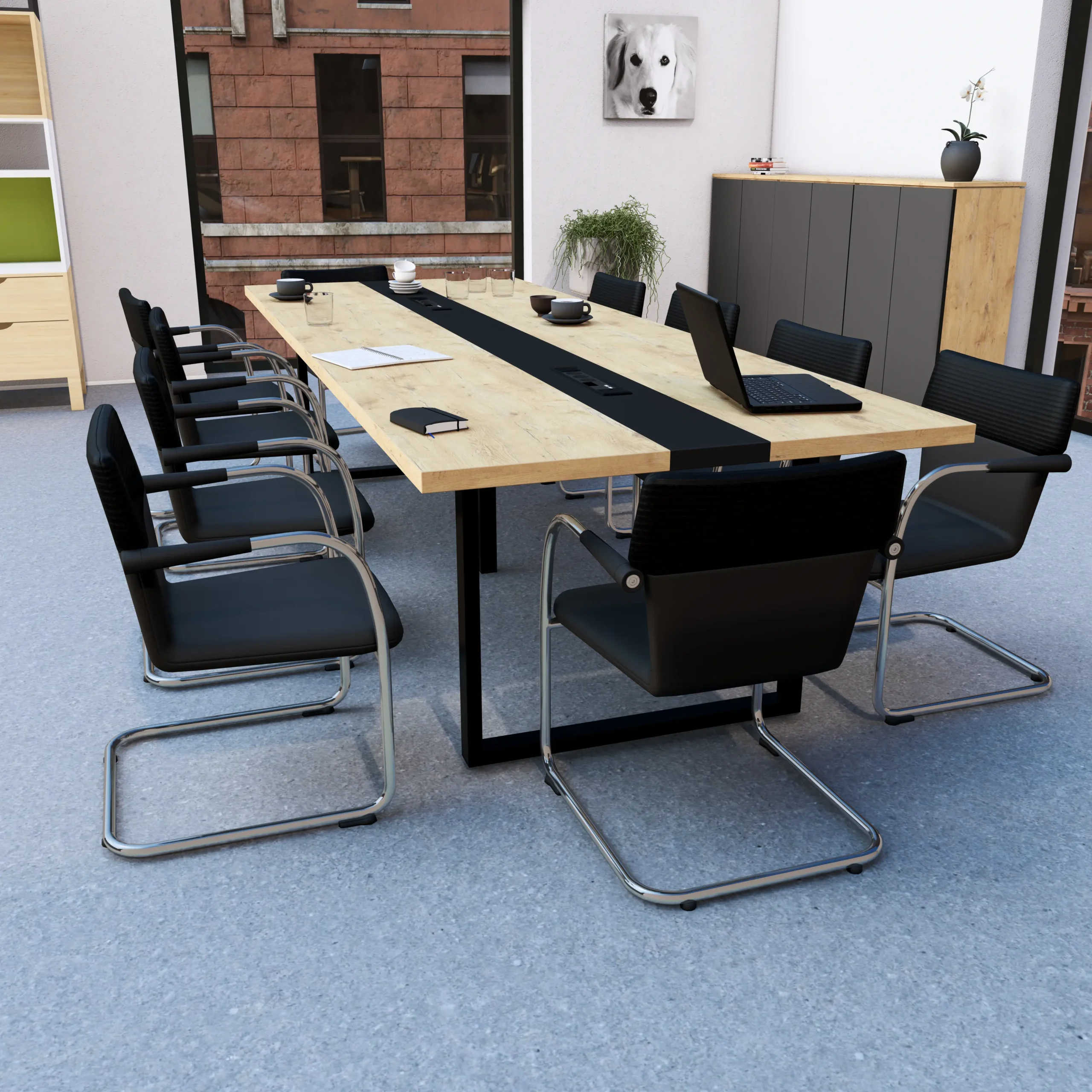 Stół konferencyjny LOFT Triplex Dąb Olejowany został zaprojektowany, aby spełnić oczekiwania najbardziej wymagających użytkowników. Solidna konstrukcja stołu oparta jest na wytrzymałym metalowym stelażu, dostępnym w dwóch klasycznych kolorach: czarnym lub białym, co pozwala dopasować stół do różnorodnych aranżacji wnętrz.