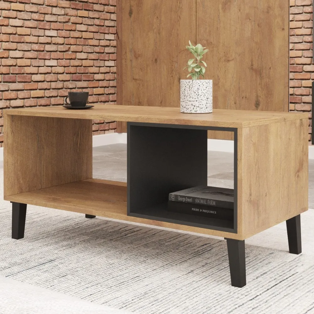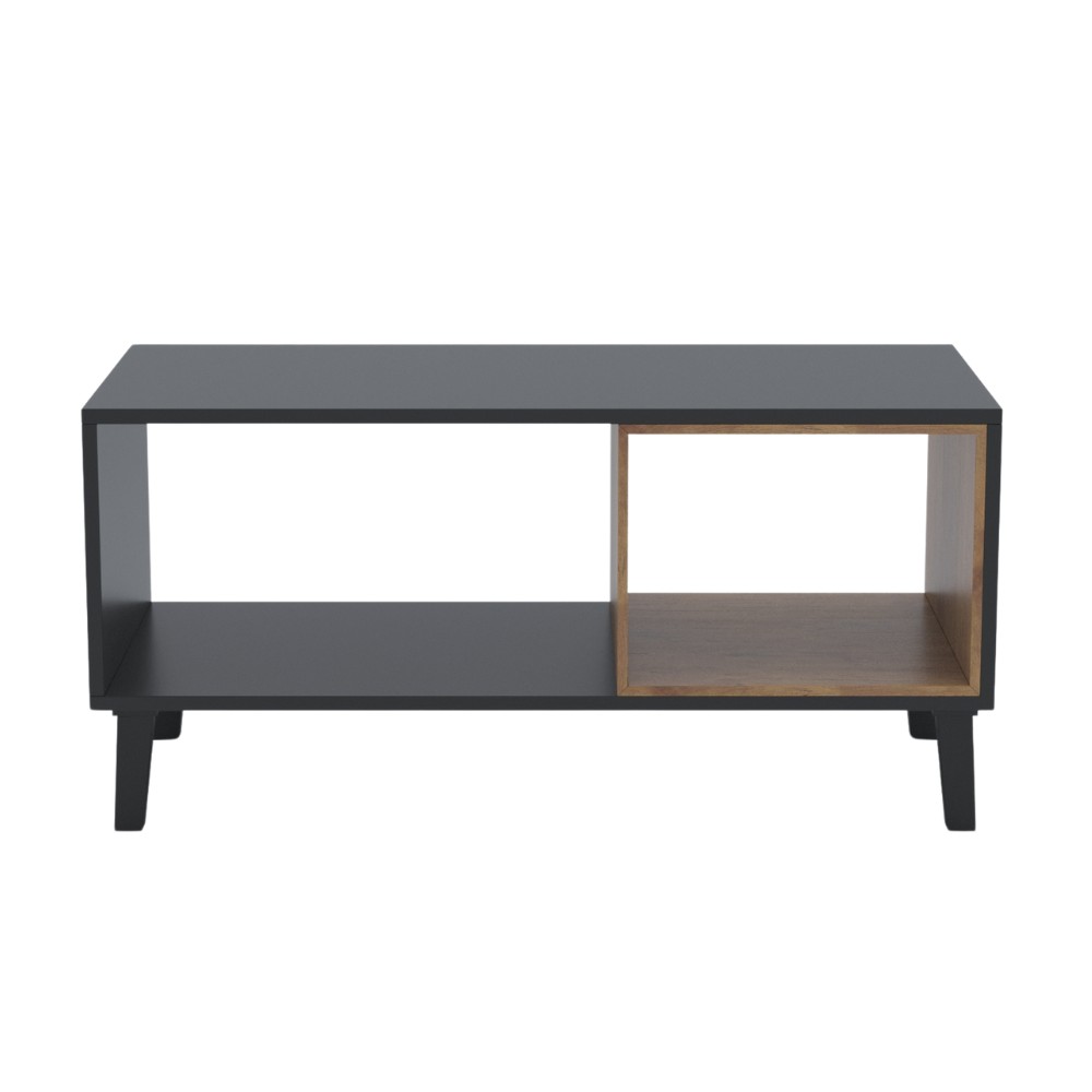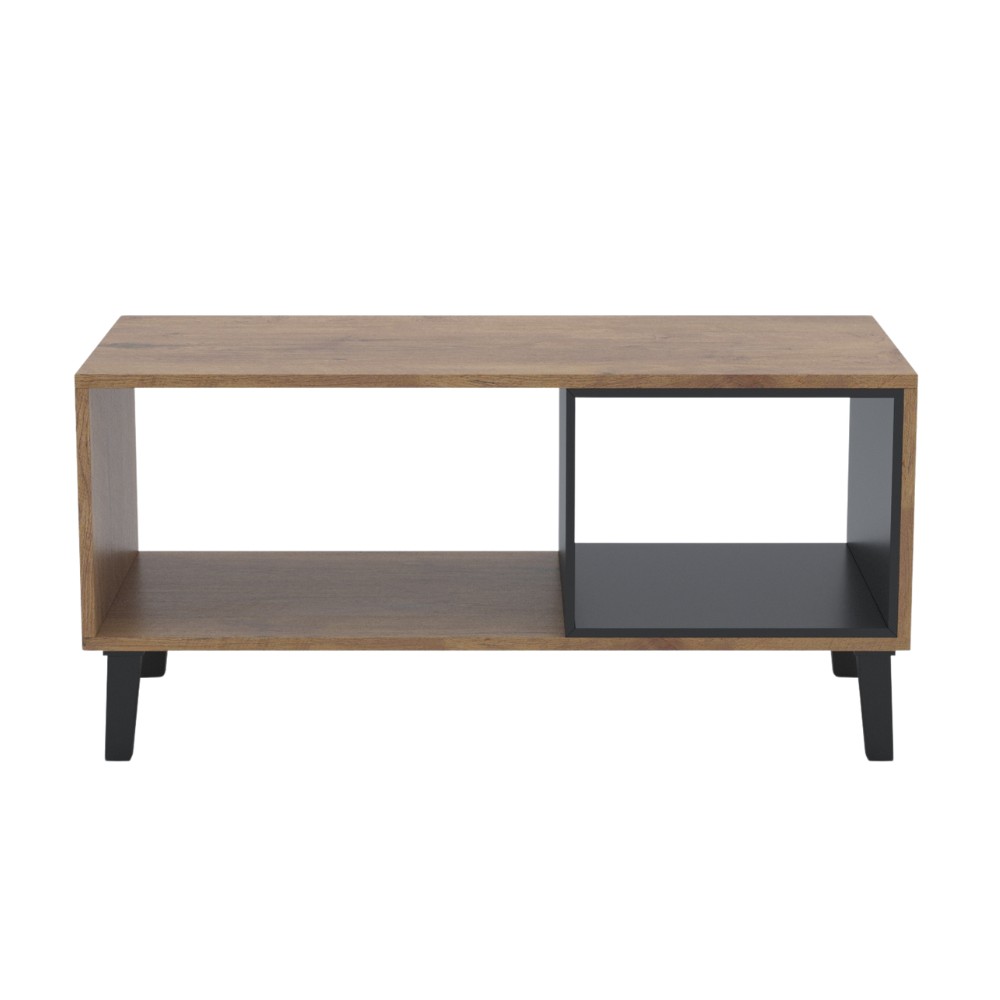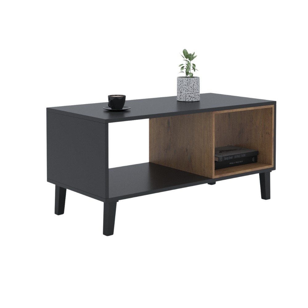 Otwarta półka po jednej stronie idealna do przechowywania książek, magazynów czy dekoracji. Natomiast zamknięta komora, która może służyć jako miejsce do przechowywania przedmiotów, które chcemy ukryć.