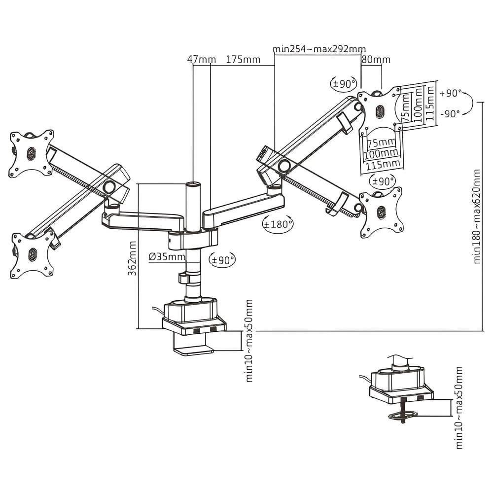 - Obsługuje przekątne monitorów w zakresie: 17''-32''